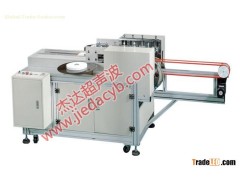 It is adopts Ultrasonic welder, set transporting equipment on machine’s body, set the semi-finished products on transporting equipment, through Pull barrel serging,Use the Ultrasonic flower wheel pressed and cutting the tie-on. finally, output the finished products. Completed all the program.
